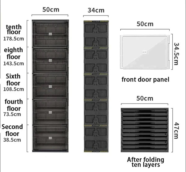 O painel magnético da porta melhora a vedação da caixa de sapatos, adicionando um toque elegante ao visual geral. A estrutura da caixa mais espessa contribui para uma capacidade de carga mais estável, garantindo a longevidade do organizador. Com reforço duplo que fecha bem e não deforma, este organizador portátil de sapatos não é apenas uma solução de armazenamento, mas um complemento durável e eficiente para sua casa que transforma a maneira como você gerencia sua coleção de sapatos.