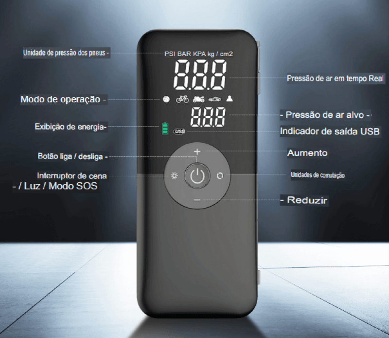 • Tipo: Compressor Portátil Recarregável