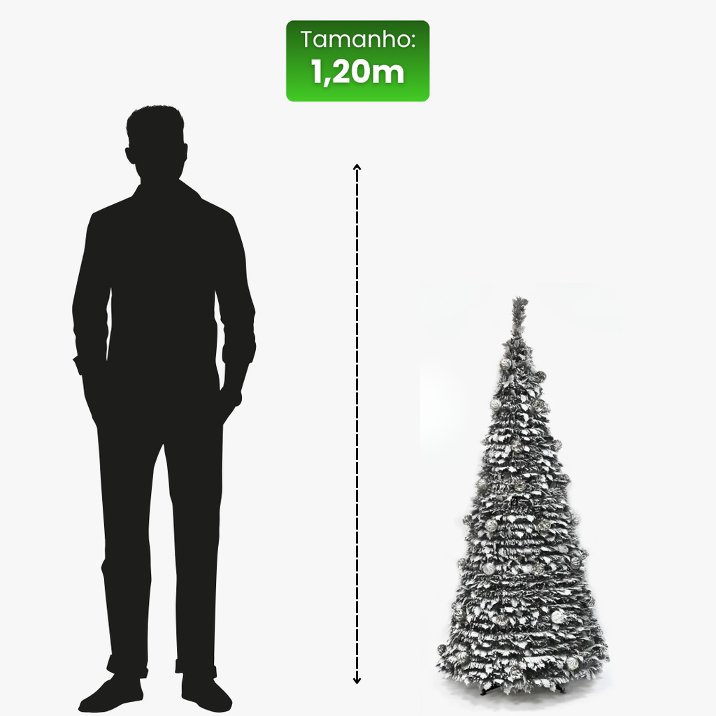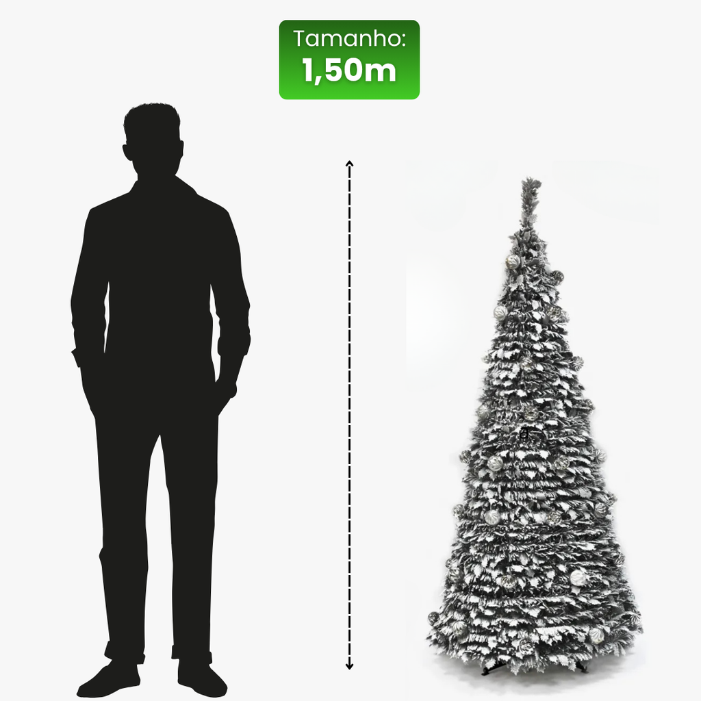 Com 150 cm de altura, a Árvore de Natal Retrátil tem o tamanho ideal para se destacar em sua sala, mas seu design compacto facilita o armazenamento. Quando desmontada, ocupa pouco espaço, garantindo que você a guarde facilmente até o próximo Natal.
