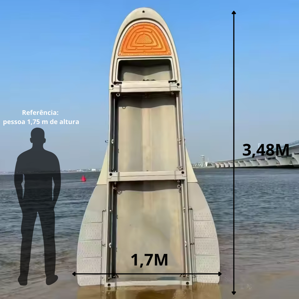 - ✅ Seguro e estável: casco com flutuadores laterais; mesmo cheio d’água, não afunda