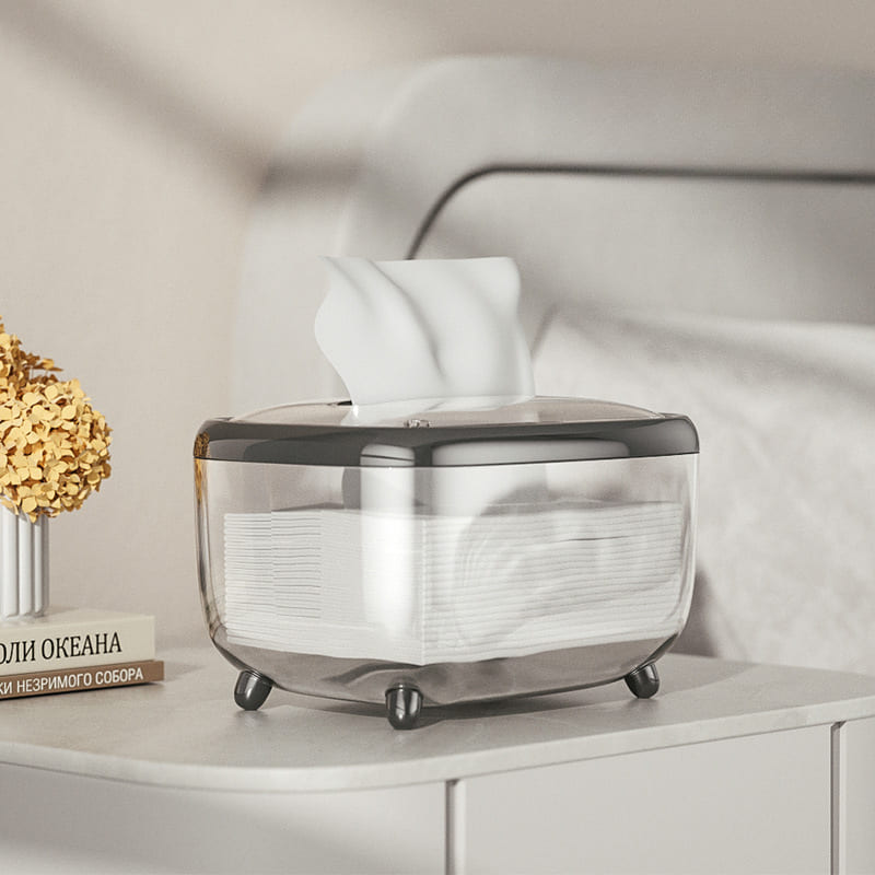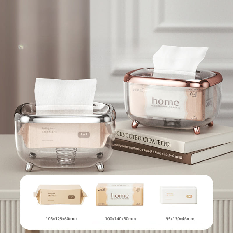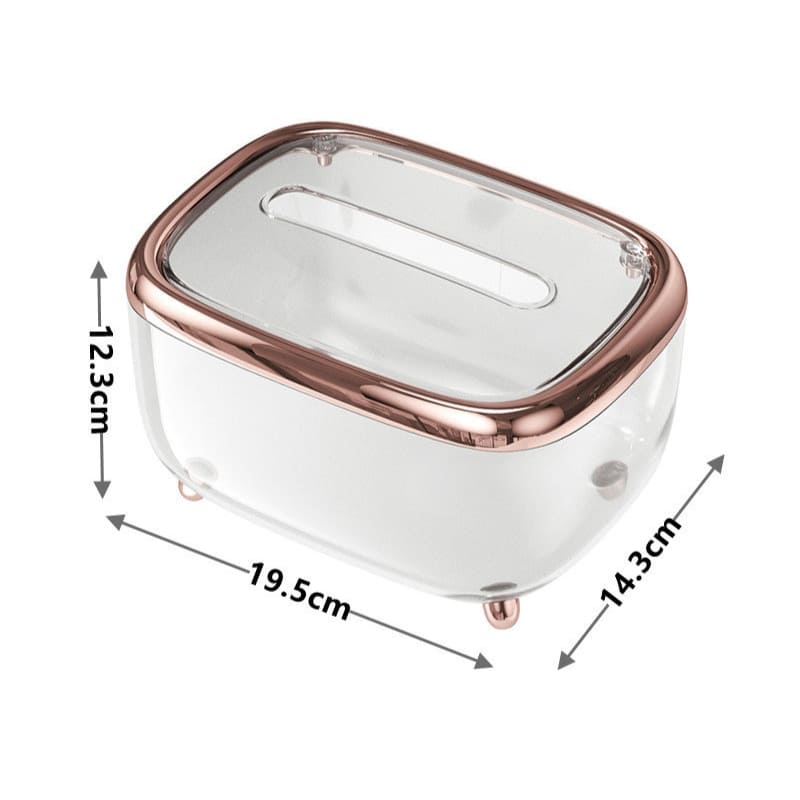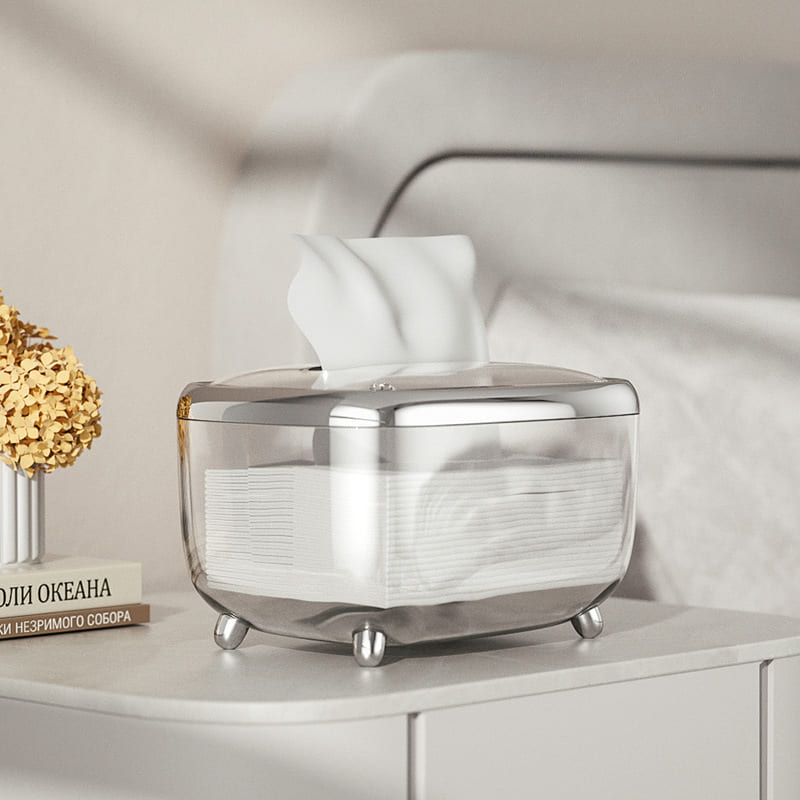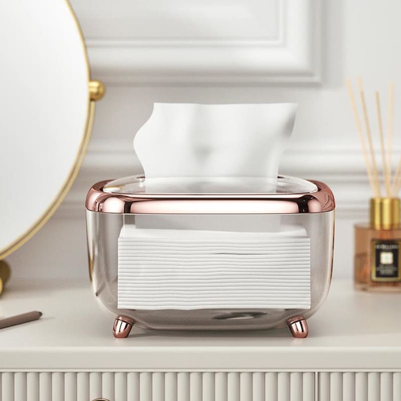 A Caixa Porta Lenço Umedecido e Papel do Mahaos é a forma mais bonita de manter seus lenços organizados. Conta com design transparente que permite controlar a quantidade de lenços, e acabamentos em cores finas e elegantes como preto, prata e rose. Deixe sua bancada mais bonita e seus lenços mais organizados.
