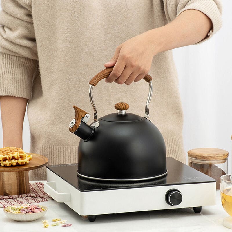 A Chaleira de Inox com Apito da Mahaos é a maneira perfeita de ferver água para chá, café ou cozinhar! Charmosa e elegante, além de durável e leve, esta chaleira possui uma capacidade de 2,5 litros e uma alça de madeira ergonômica. Serve para fogões a gás ou elétricos e um apito na tampa avisa quando a água ferveu.