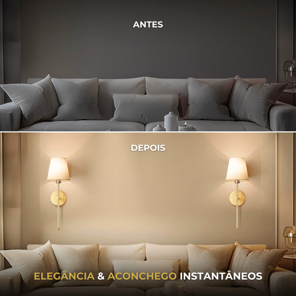 Transforme o clima do seu quarto, sala ou corredor em segundos com o Kit de 2 Arandelas Sem Fio Recarregáveis. Luz suave, design minimalista e zero complicação.