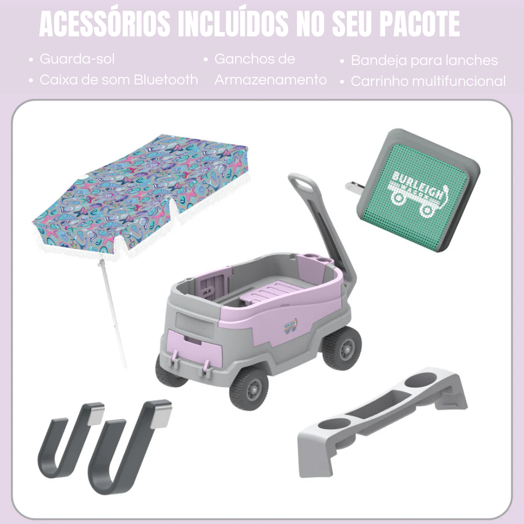Transforme seus momentos em família com o FlexCart, o carrinho multifuncional que combina inovação, conforto e praticidade. Seja na praia, parque ou eventos, ele faz tudo por você!