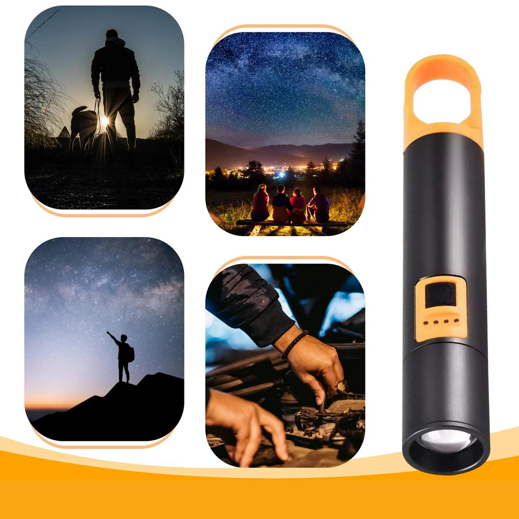 🌟 Alcance de Iluminação Impressionante! Ilumine até 500 metros de distância, ideal para caminhadas noturnas e emergências.