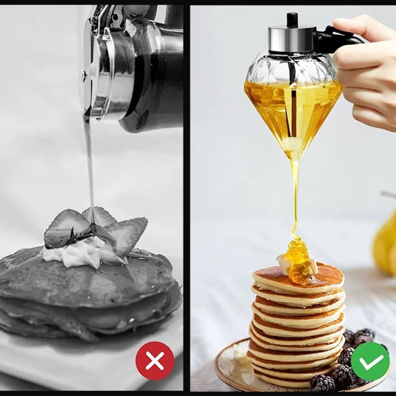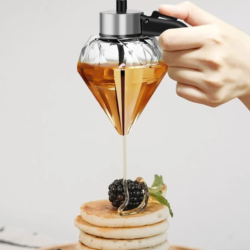 O Meleira de Vidro Porta Mel Dispenser com Base da Mahaos é ótimo para armazenar e exibir mel. Este dispensador de mel tem um design elegante e exclusivo em forma de diamante que adiciona um toque especial à sua cozinha. Conta com base anti-queda, antiderrapante e frasco com silicone à prova de gotejamento.