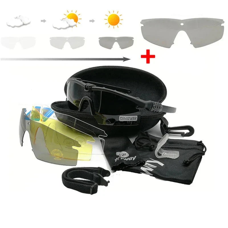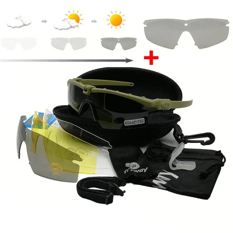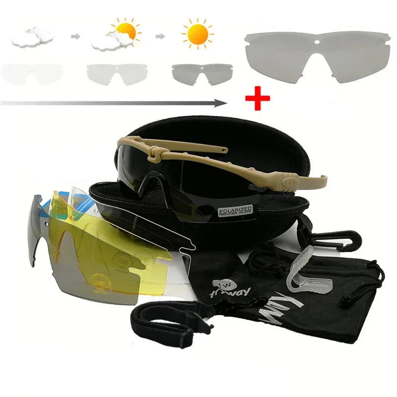 Óculos Tático Polarizado: Essenciais para atividades ao ar livre, treinamentos militares e operações policiais. Este modelo oferece resistência, proteção UV e lentes anti-embaçamento para garantir a visão clara e proteger os olhos em situações extremas. Aproveite o conforto e a confiabilidade destes óculos para melhorar seu desempenho em campo.
