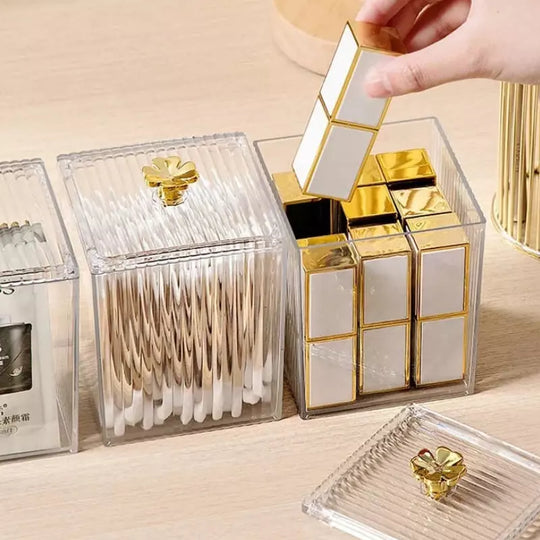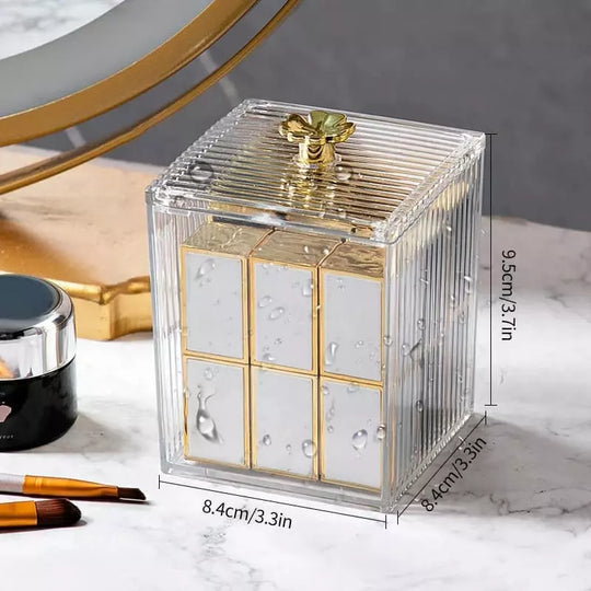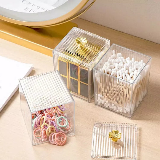 - 1x Organizador Porta Cotonete e Algodão Acrílico com Tampa.