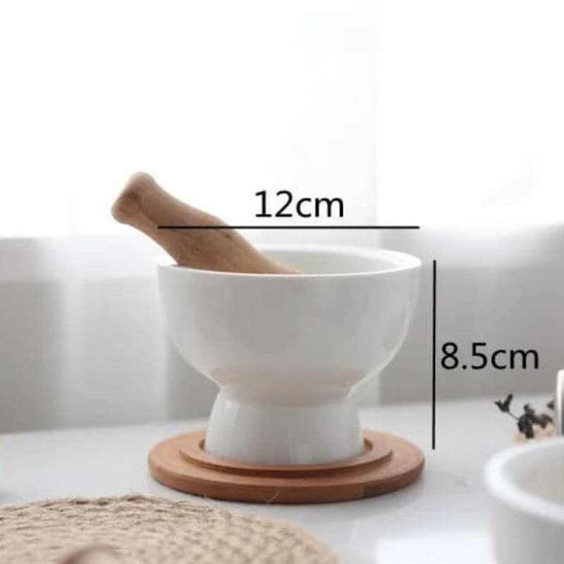O Pilão com Macerador de Cerâmica Base de Madeira da Mahaos é ideal para ter em sua cozinha. Fora o belo design feito em cerâmica com base de madeira, esse pilão é ótimo para triturar alho, pimenta, gengibre e fazer misturas com os melhores temperos. Deixe seus alimentos deliciosos com seus próprios temperos.