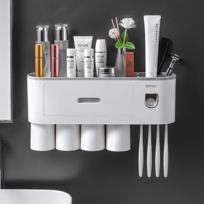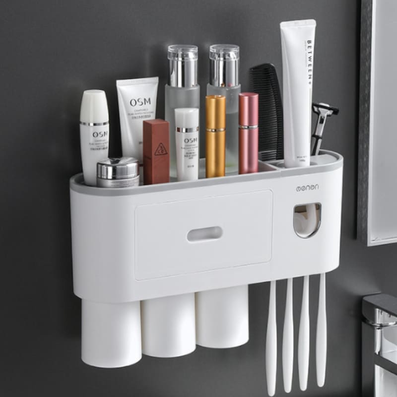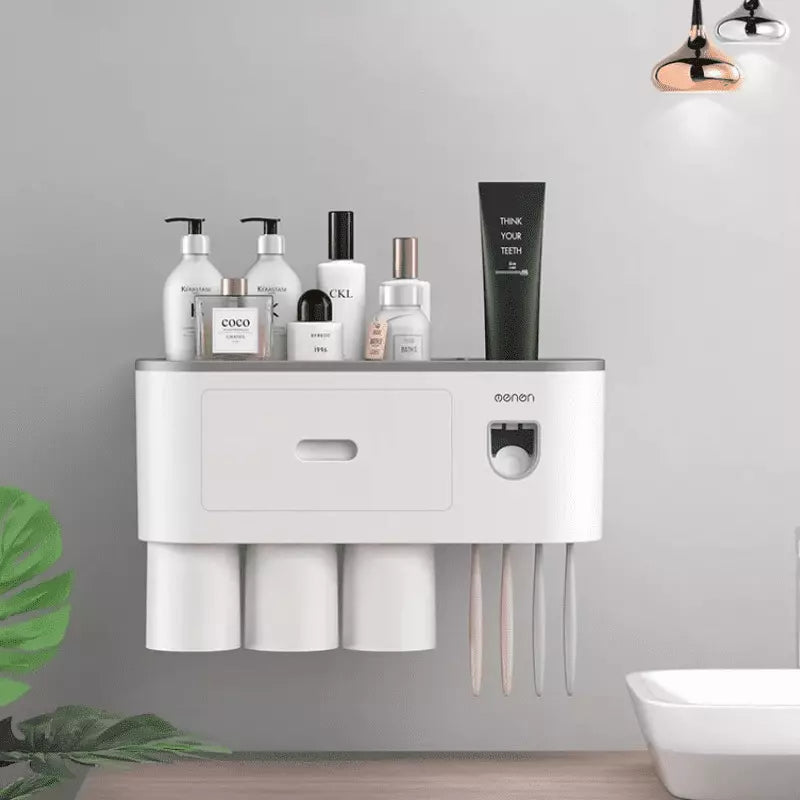 O Porta Escova de Dente Dispenser com Gaveta e Copos da Mahaos vai ajudar a manter seu banheiro mais organizado. Pode ser usado por adultos e crianças fazendo com que adorarem escovar os dentes. Conta com organizador de escova, dispenser de pasta de dente, gaveta organizadora, copos magnéticos e muita praticidade.